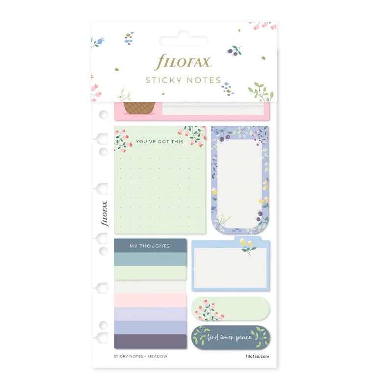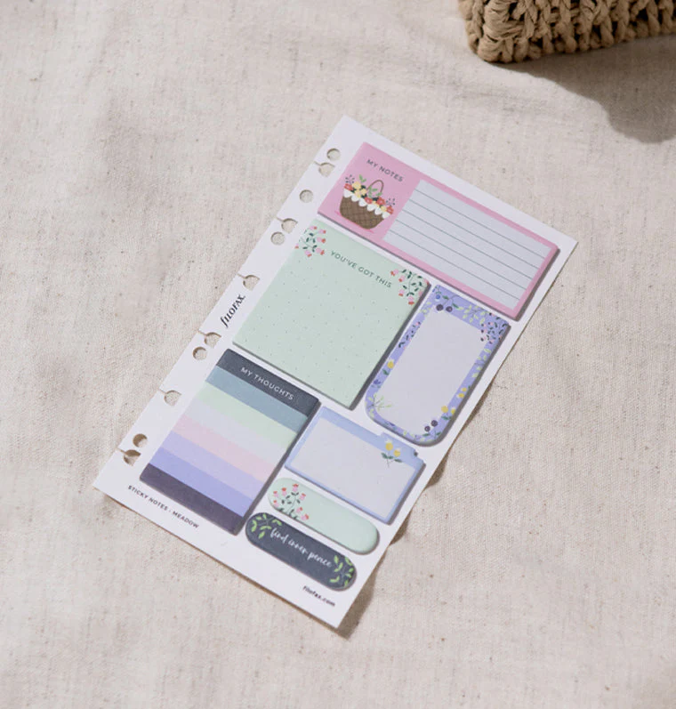 Setzen Sie Prioritäten für Ihr Wohlbefinden und fügen Sie gute Gewohnheiten in Ihre Routine ein mit diesem Set von wiederverwendbaren Haftnotizen aus unserer Meadow Collection. Enthalten sind verschiedene Notizblöcke und Seitenmarker in den Farben Lavendel, Pink und Grün. Dieses Set wurde speziell für Organiser und Clipbooks in den Größen A5 und Personal sowie für nachfüllbare Notizbücher in den Größen A5 und A4 entwickelt.